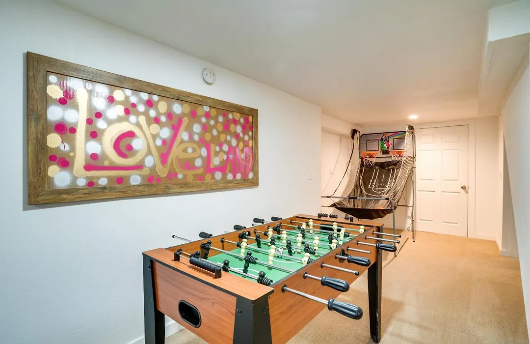 La villa Game Room And Fire Pit Family-Friendly Loveland Gem incluye una cocina bien equipada con un lavavajillas, cafetera/tetera y un horno, lo que permite a los huéspedes preparar sus propias comidas. Los huéspedes pueden cenar en el restaurante Durbar Nepalese and Indian Bistro, a 350 metros de este establecimiento.